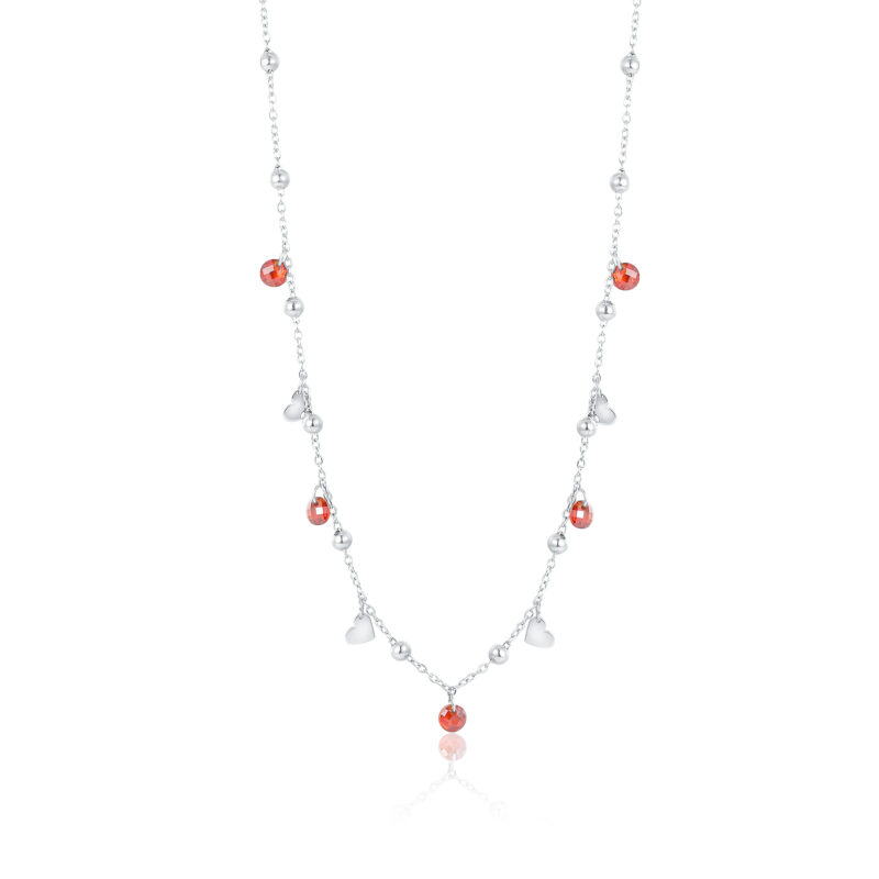 Collana Catena Pallini Cuori e Cristalli Rossi Brand Gioielli