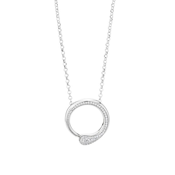 Collana rodiata con pendente contrariè di pavè di zirconi.