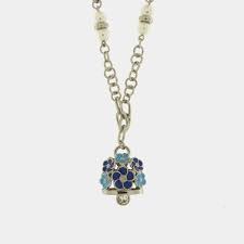 Collana realizzata in ottone galvanizzato, con campanella multicolor e fiori in rilievo.