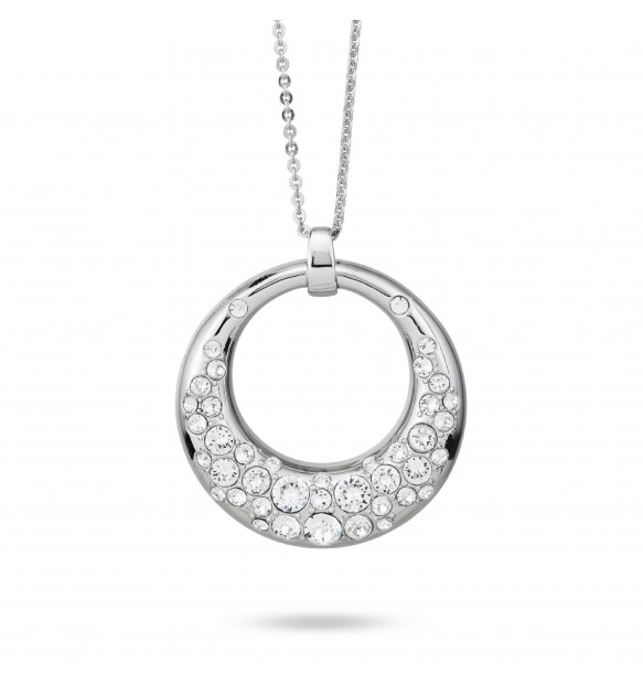 Collana da donna di Boccadamo della collezione Harem della linea Mediterranea. Collana rodiata, a doppio indosso, con pendente grande a forma di cerchio vuoto, decorato da cristalli crystal.