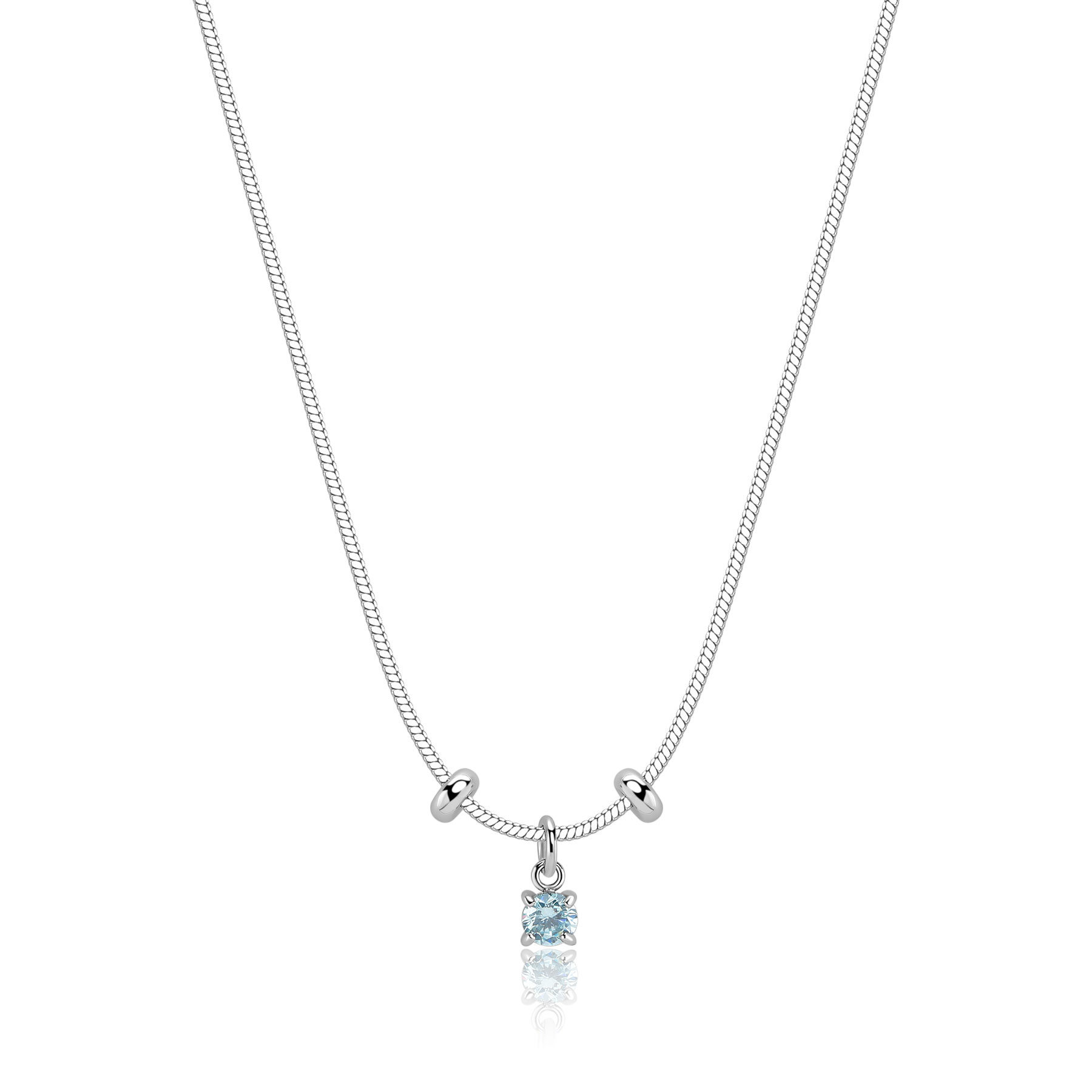 Collana da donna di S’agapò della collezione Joy. Collana in acciaio 316L con cristallo di colore acquamarina.