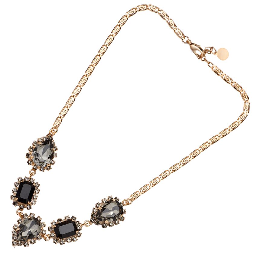 Collana da donna dorata in ottone galvanizzato impreziosita da cristalli neri, chiusura con moschettone della collezione Ottaviani.