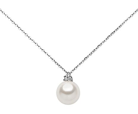 Collana in Oro 18 kt con Perle fresh water Ø 8-8,5 e diamanti Ct. 0,03 Colore G/H Purezza VS2Lucentezza Perla: OttimaSuperfice Perla: PulitaColore Perla: BiancoTaglio Diamante: BrillanteColore Diamante: G/HColore Metallo: Bianco