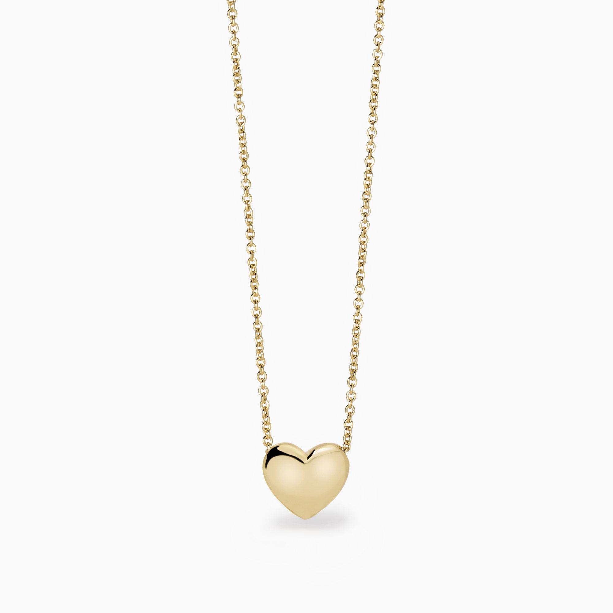 Collana da donna in argento placcato oro 18K con catena rolò e pendente a forma di cuore.
