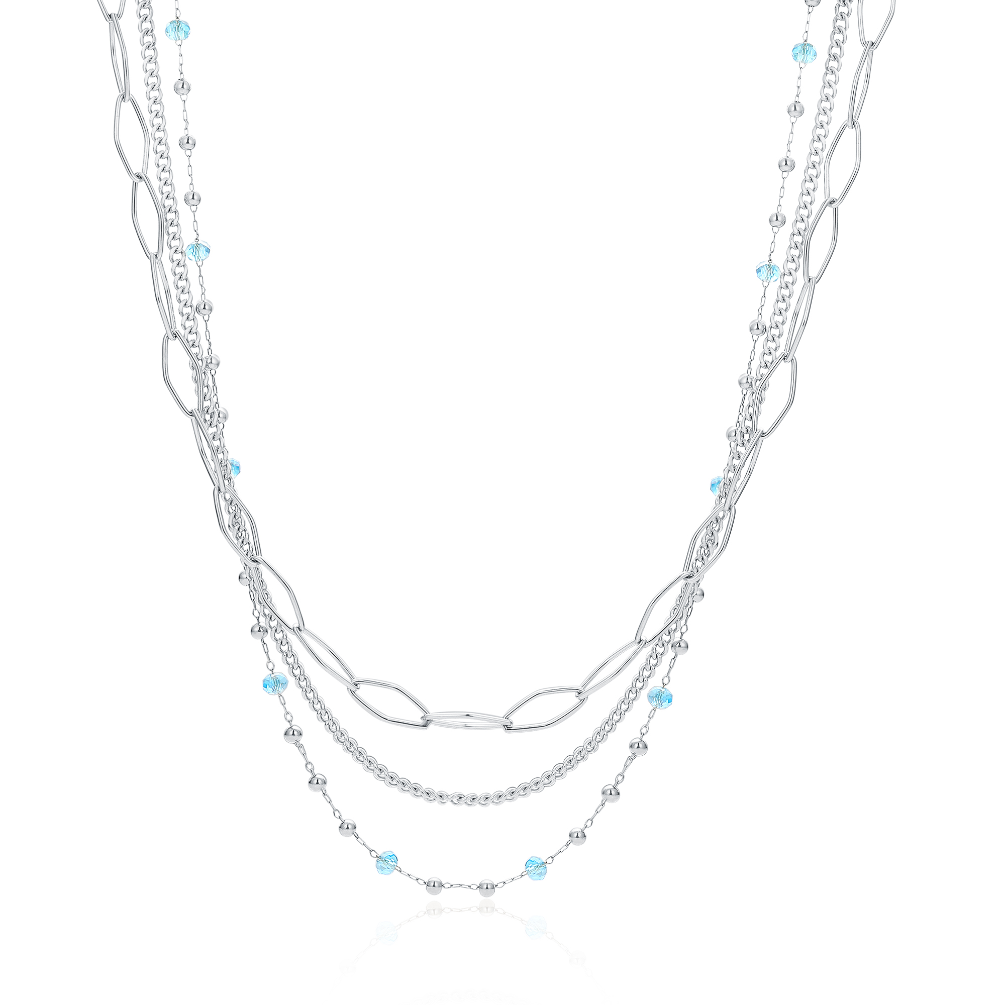 Collana triplo filo con cristalli passanti turchesi e catena a rombi