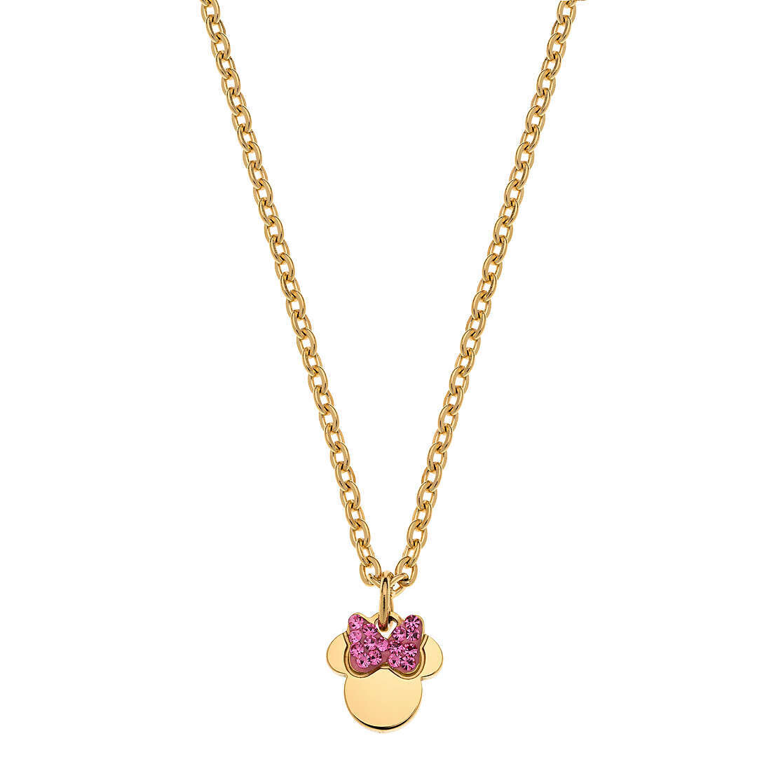 Collana Da Bambina Di Disney Della Collezione Preziosi In Acciaio Mickey And Minnie. Collana Realizzata In Acciaio Di Colore Giallo Con Zirconi Di Colore Rosa. Il Soggetto È Minnie.