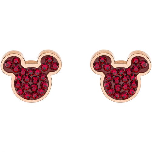 Orecchini da bambina di Disney della collezione preziosi in acciaio mickey and minnie. Orecchini realizzati in acciaio di colore giallo con zirconi di colore rosso. Il soggetto è mickey. La chiusura è con farfallina in silicone antiallergico. La referenza è: e600178yrrl-b. Cs