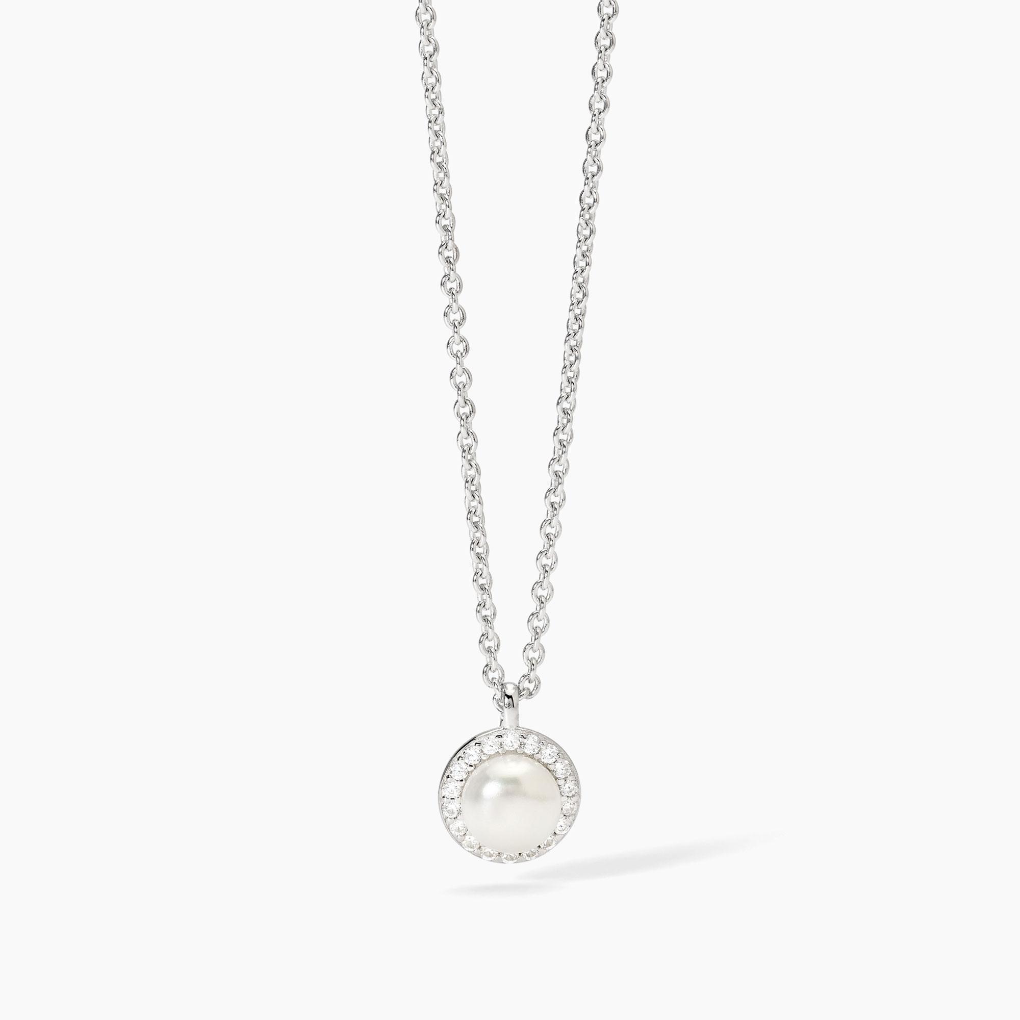 Girocollo in argento con perla coltivata e zirconi Mabina