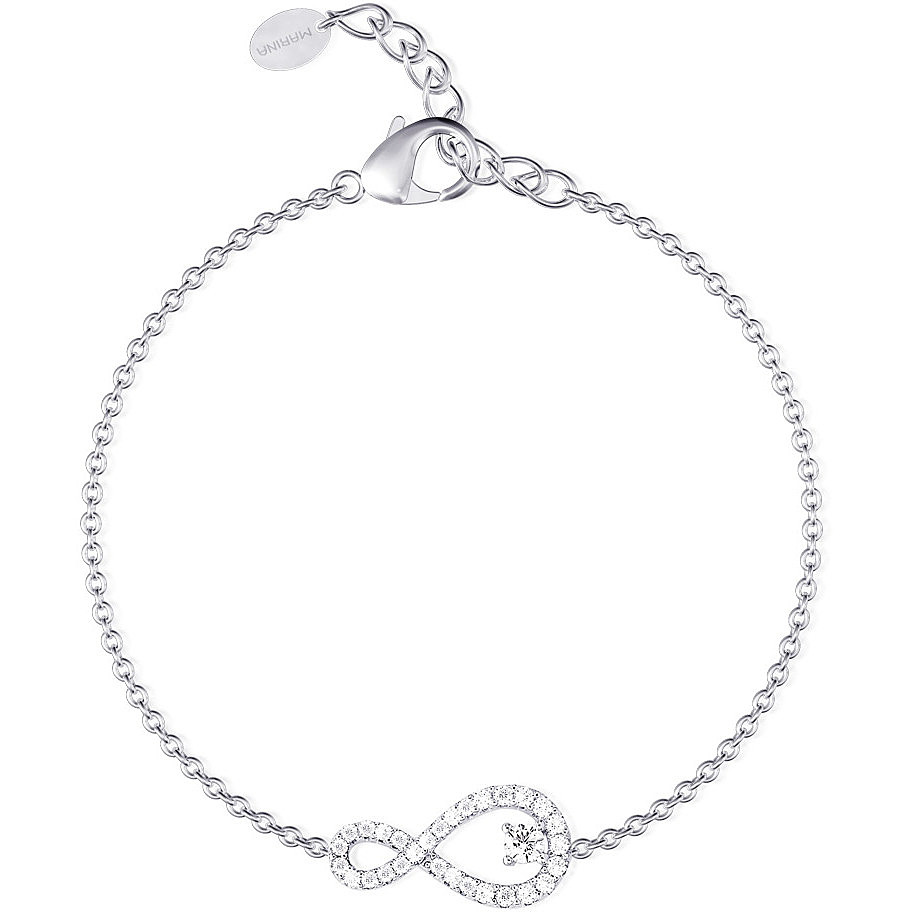 Bracciale Da Donna Di Mabina Gioielli. Bracciale In Argento Con Infinito In Zirconi E Punto Luce In Zircone Al Centro. Incastonatura Degli Zirconi A Griffe Chiusura Con Moschettone Misura Regolabile, Lunghezza Da 16 A 19 Cm. La Referenza È 533235.