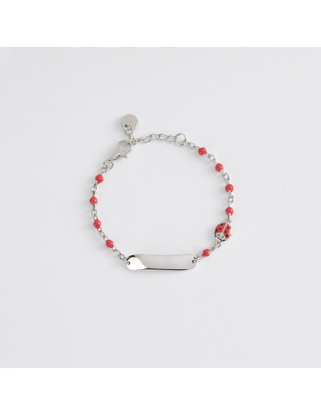 Bracciale catena della collezione Mabina Junior Baby da bambini. Colore: argento,bianco e verde. Bracciale in argento 925‰ composto da catena a sfere in smalto bianco, e targa personalizzabile tramite incisione. Chiusura regolabile con moschettone e pendente logato. 2 ANNI DI GARANZIA