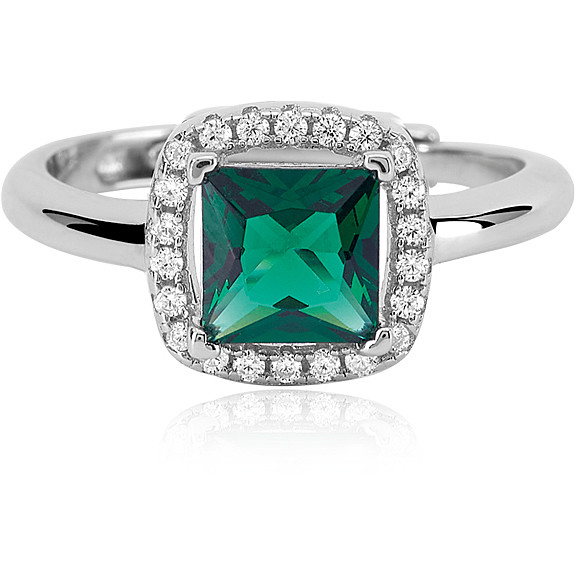 Anello Da Donna Di Mabina Gioielli. Anello In Argento 925 Rodiato Con Smeraldo Sintetico Taglio Cuscino Antico E Zirconi Bianchi. Incastonatura Centrale A Griffe A Quattro Punte. Misura Regolabile, Dalla 11 Alla 19. Materiale: Argento 925 925 , Zirconi, La Referenza È 523213