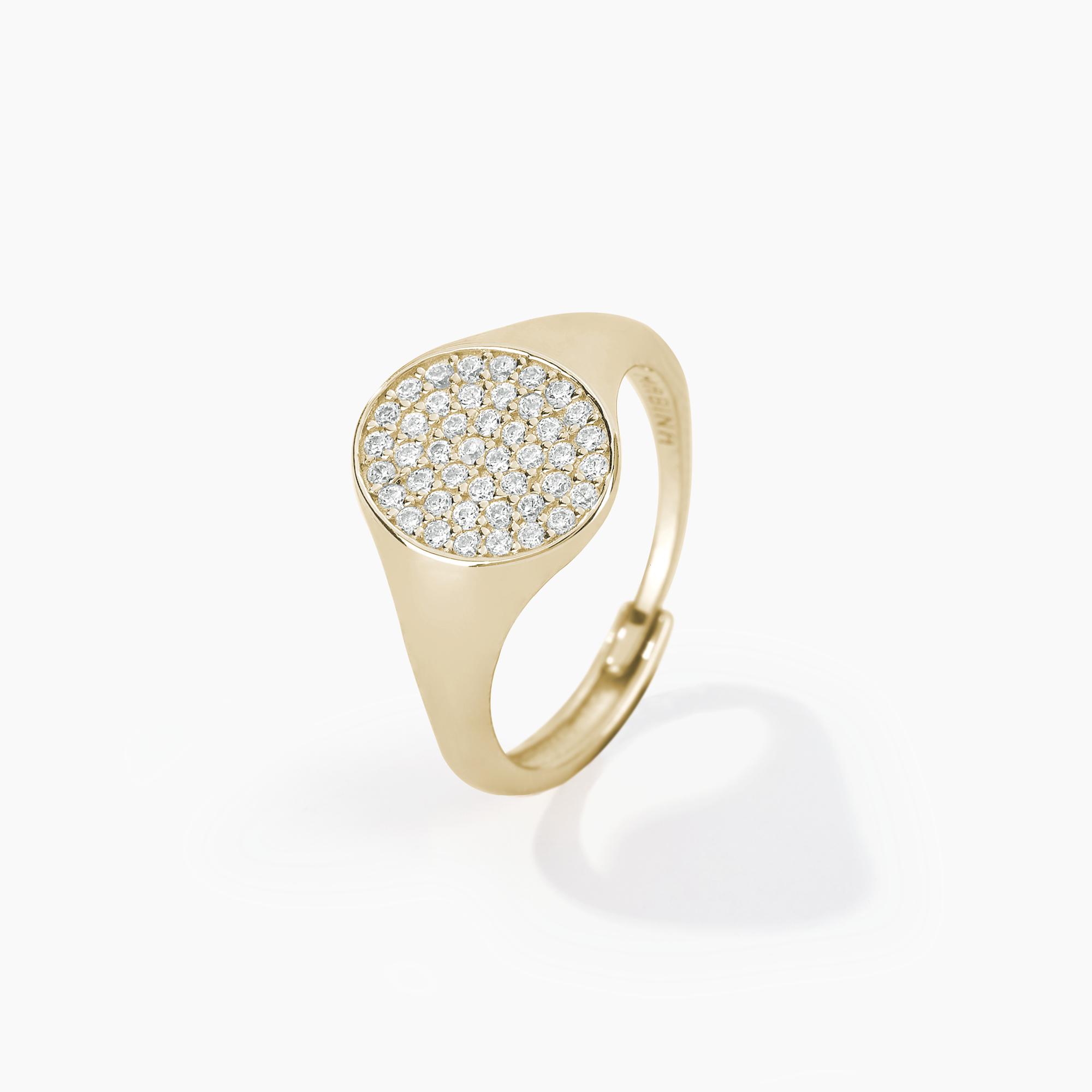 Anello chevalier in argento con pavé di zirconi.