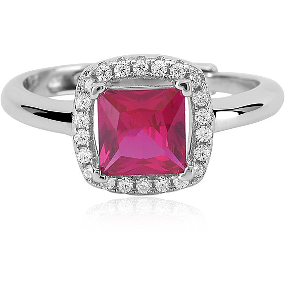 Anello Da Donna Di Mabina Gioielli. Anello In Argento 925 Rodiato Con Rubino Sintetico Taglio Cuscino Antico E Zirconi Bianchi. Incastonatura Centrale A Griffe A Quattro Punte. Misura Regolabile, Dalla 11 Alla 19. Materiale: Argento 925 925 , Zirconi, La Referenza È 523211