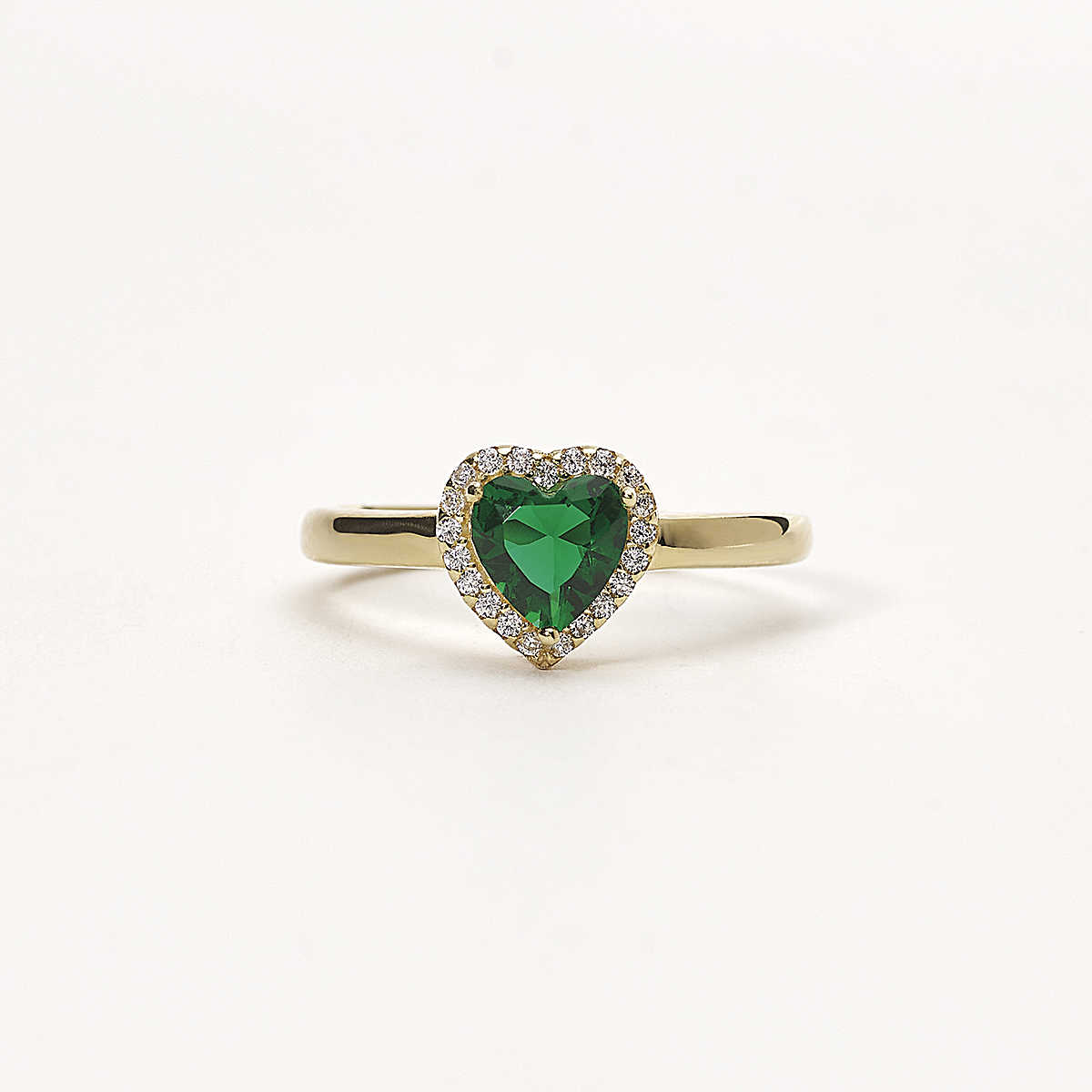 Anello Da Donna Di Mabina. Anello In Argento 925/°°° Dorato Con Zirconi Bianchi Ø 1 Mm E Smeraldo Sintetico Taglio Cuore 6X6 Mm, Misura Regolabile. La Referenza È 523262