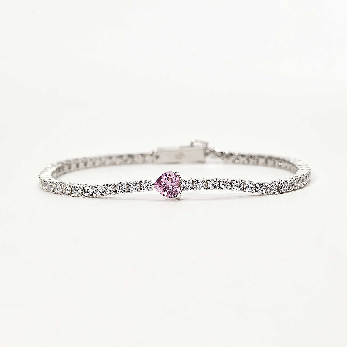 Bracciale Da Donna Di Mabina. Bracciale In Argento 925/°°° Rodiato, Larghezza 2.80 Mm, Misura S, Lunghezza Cm 16 Con Zirconi Bianchi Ø 2.5 Mm E Zircone Taglio Cuore 6X6 Mm. La Referenza È 533557-M