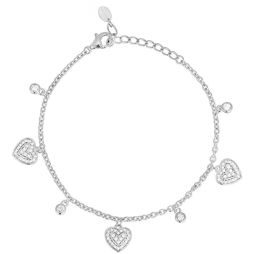 Bracciale Da Donna Di Mabina Gioielli. Bracciale In Argento Con Cuori In Pavé Di Zirconi Alternati A Punti Luce In Zircone. Incastonatura Degli Zirconi A Castone Chiusura Con Moschettone Misura Regolabile, Lunghezza Da 16 A 19 Cm. La Referenza È 533354.