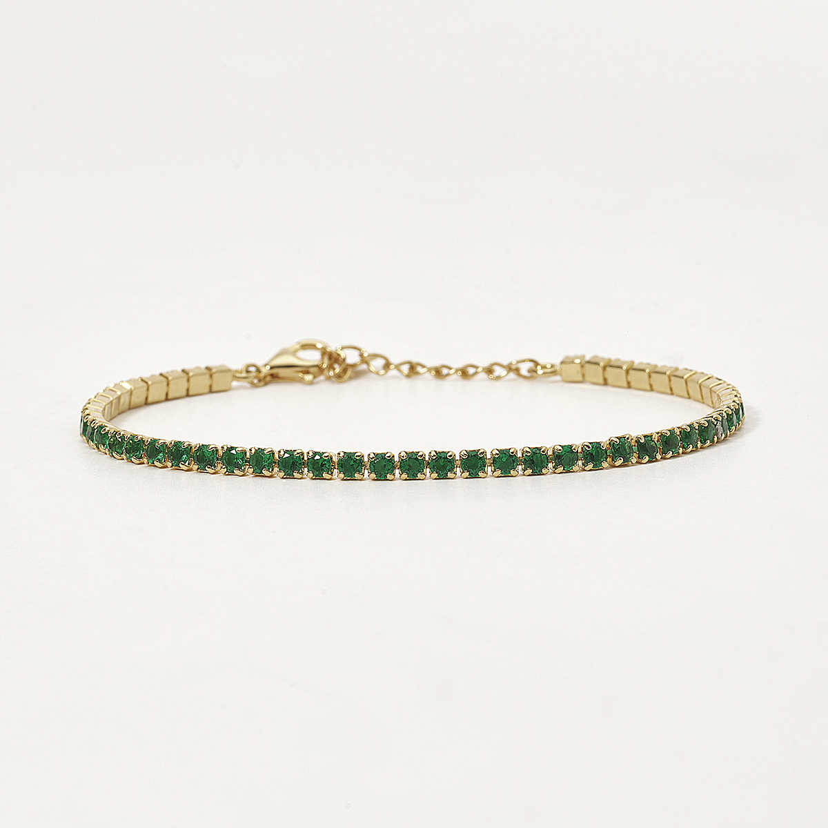 Bracciale Da Donna Di Mabina. Bracciale In Argento 925/°°° Dorato Con Smeraldi Sintetici Ø 2.50 Mm, Lunghezza Regolabile Da 15.50 A 18.50 Cm. La Referenza È 533573