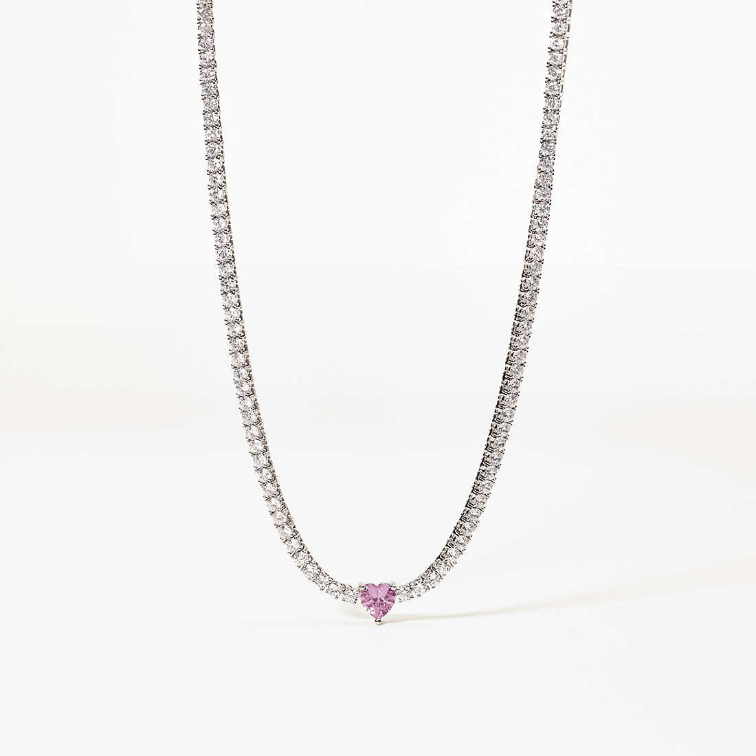 Collana Da Donna Di Mabina Della Collezione Tennis Club. Girocollo In Argento 925/°°° Rodiato, Lunghezza Regolabile Da 36 A 41 Cm Con Zircone Taglio Cuore 6X6 Mm E Zirconi Bianchi Ø 2.50 Mm. La Referenza È 553453