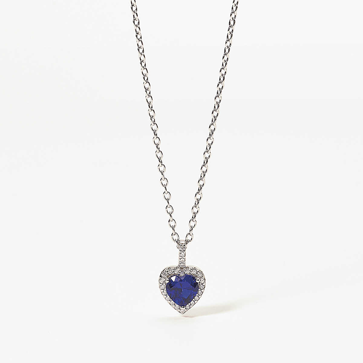 Collana Da Donna Di Mabina. Girocollo In Argento 925/°°° Rodiato, Catena Rolò Larghezza 1.50 Mm, Lunghezza Regolabile Da 40 A 45 Cm Con Zaffiro Sintetico Taglio Cuore 6X6 Mm E Zirconi Bianchi Ø 1 Mm. La Referenza È 553450