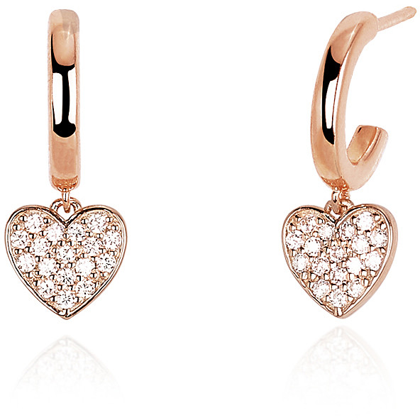 Orecchini Da Donna Di Mabina Gioielli. Orecchini A Semicerchio In Argento Rosato Con Pendente A Cuore In Pavé Di Zirconi. Misura Unica. La Referenza È 563249.Questo orecchini verrà spedito con Scatola Originale Mabina Gioielli