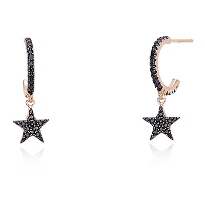 Orecchini Da Donna Di Mabina Gioielli. Orecchini A Cerchio In Argento Rosato Con Pendente A Forma Di Stella In Pavé Di Zirconi Neri. Pavé Di Zirconi Neri Con Griffe Brunite Misura Unica. La Referenza È 563334.