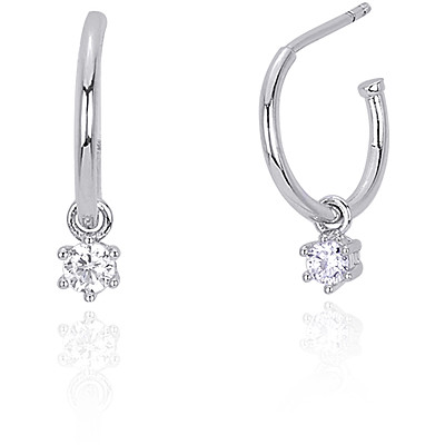 Orecchini Da Donna Di Mabina Gioielli. Orecchini A Semicerchio In Argento Con Ciondolo Punto Luce In Zircone. Incastonatura Degli Zirconi A Griffe A Sei Punte Misura Unica. La Referenza È 563269.