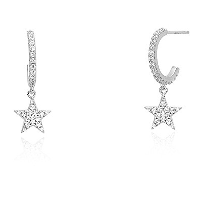Orecchini Da Donna Di Mabina Gioielli. Orecchini A Cerchio In Argento Con Pendente A Forma Di Stella In Pavé Di Zirconi. Misura Unica. La Referenza È 563333.