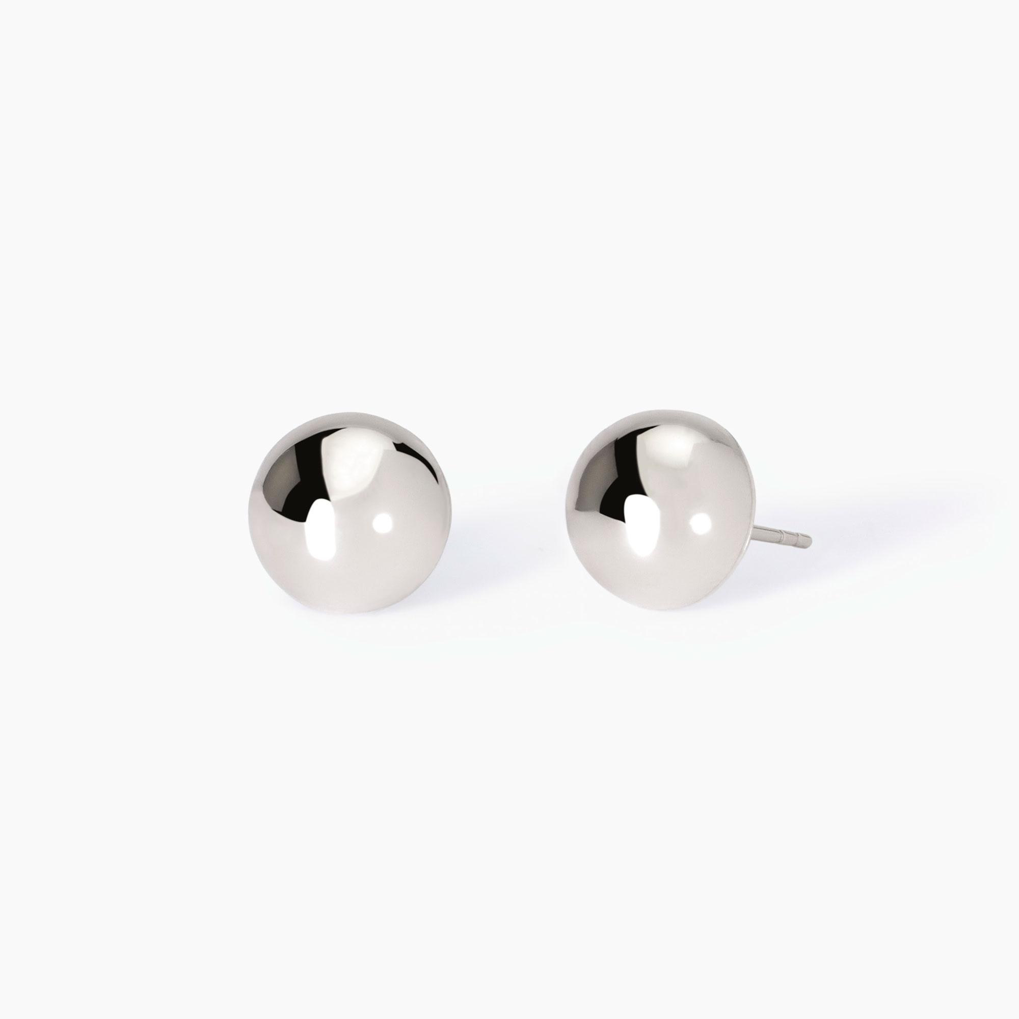 Orecchini da donna a bottone in argento rodiato.