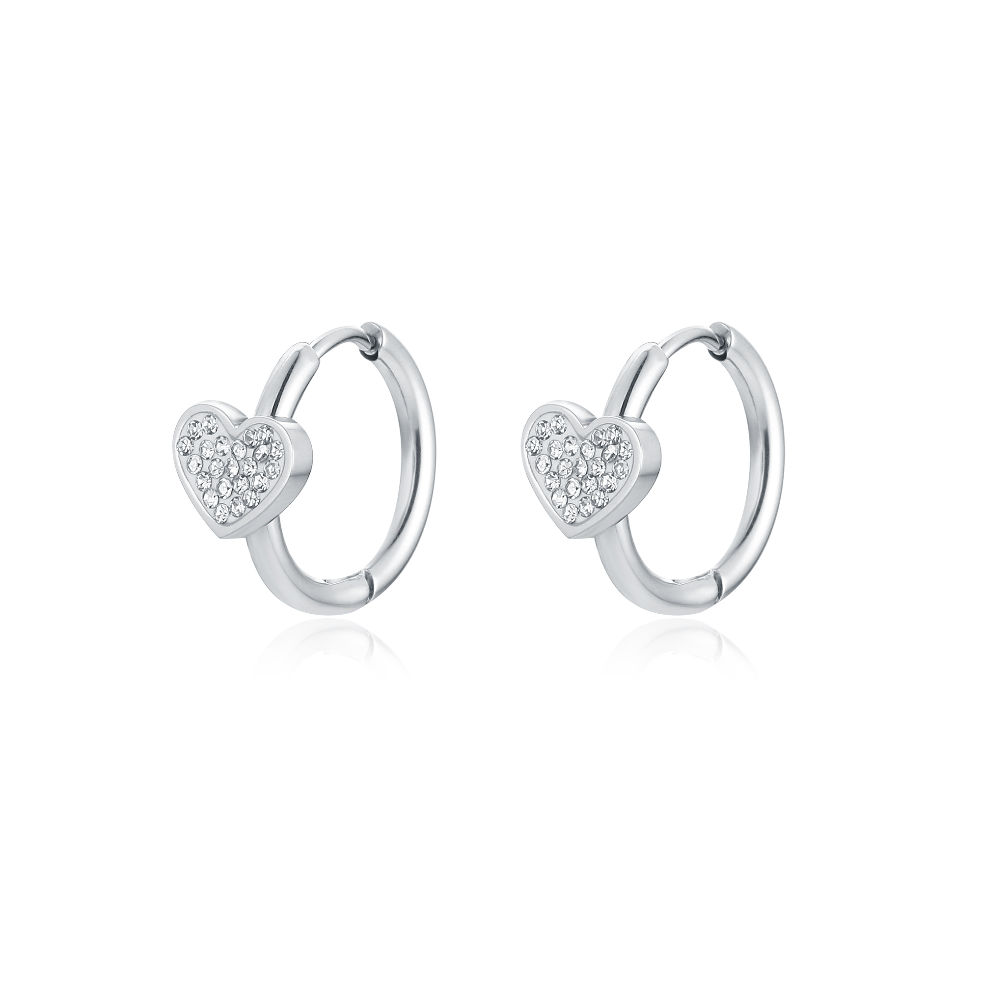 Orecchini a cerchio da 16mm con cuore di dimensioni 8mm.