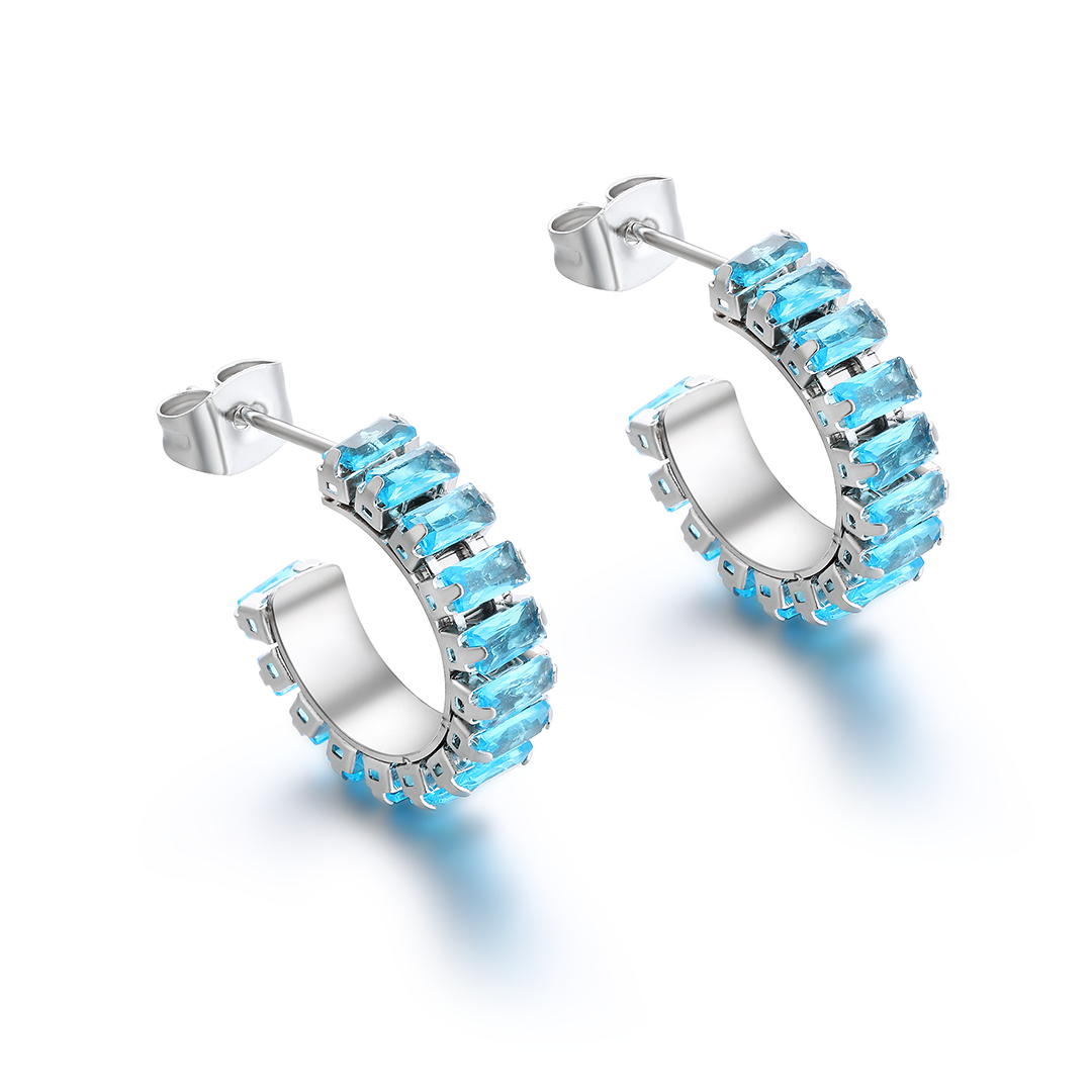 Orecchini a cerchio tennis con cristalli baguette turchesi.