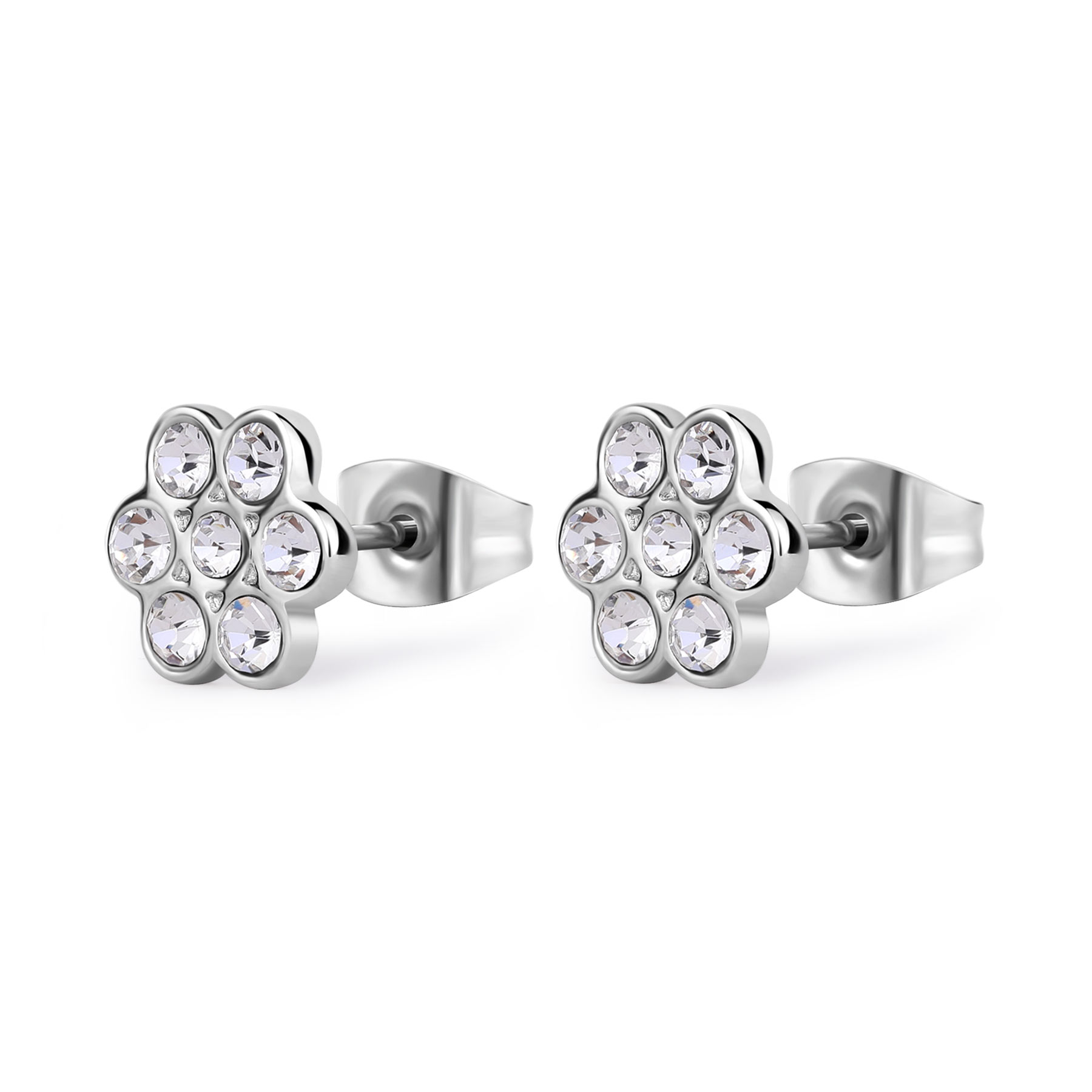 Orecchini a lobo in acciaio 316L a forma di fiore con cristalli.