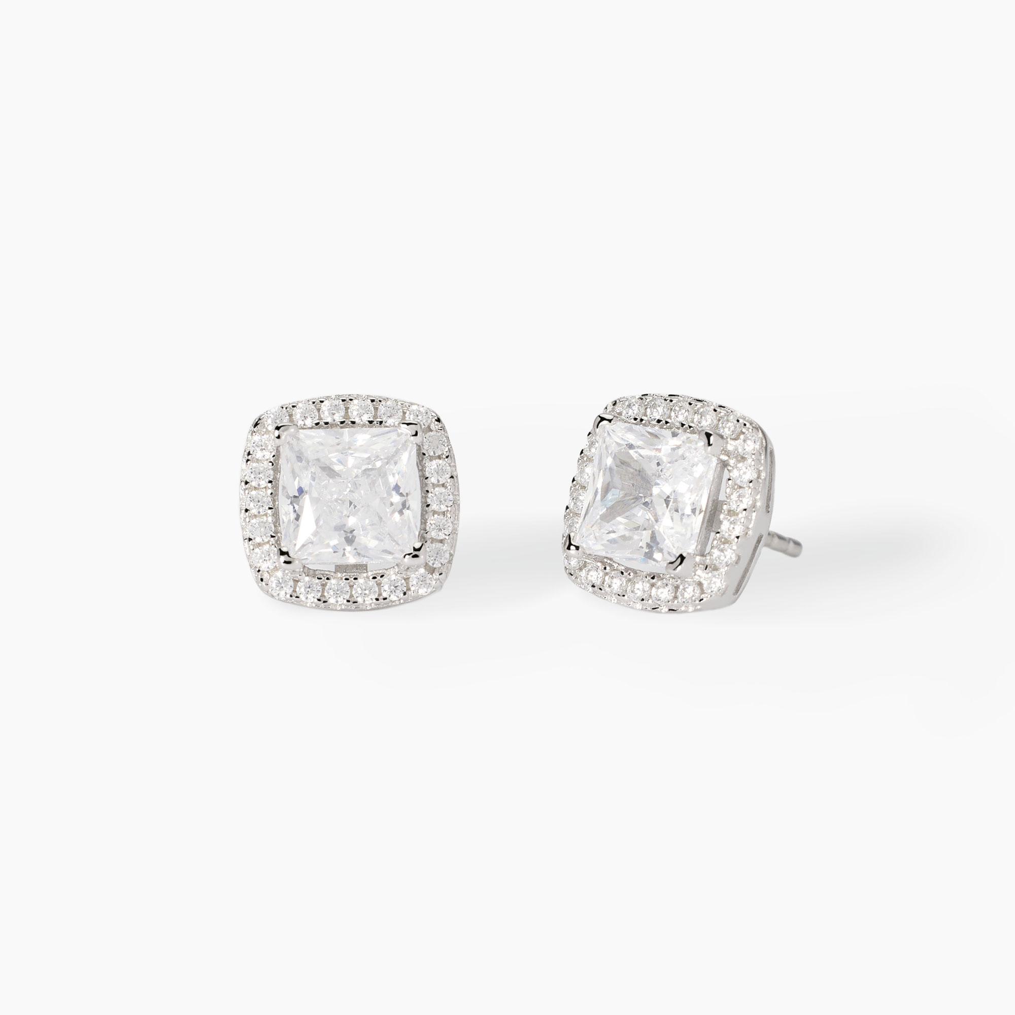 Orecchini a lobo in argento e zirconi bianchi taglio princess.