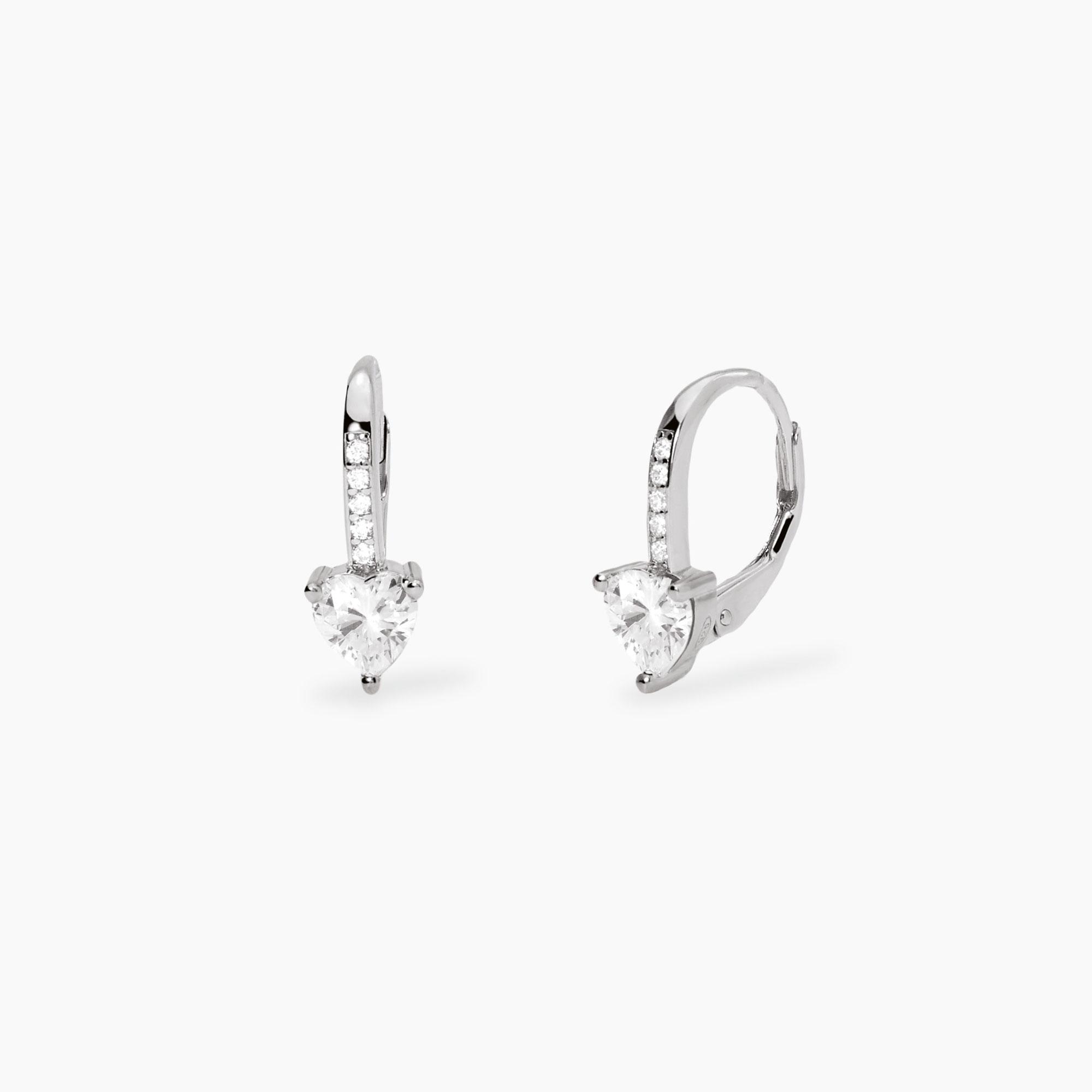 Orecchini a monachella in argento con zirconi bianchi taglio cuore.