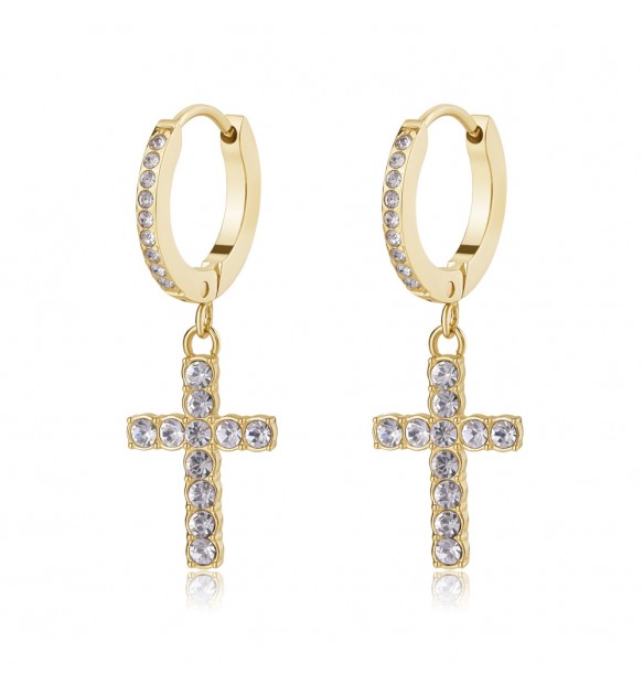 Croce pendente con cristalli bianchi.