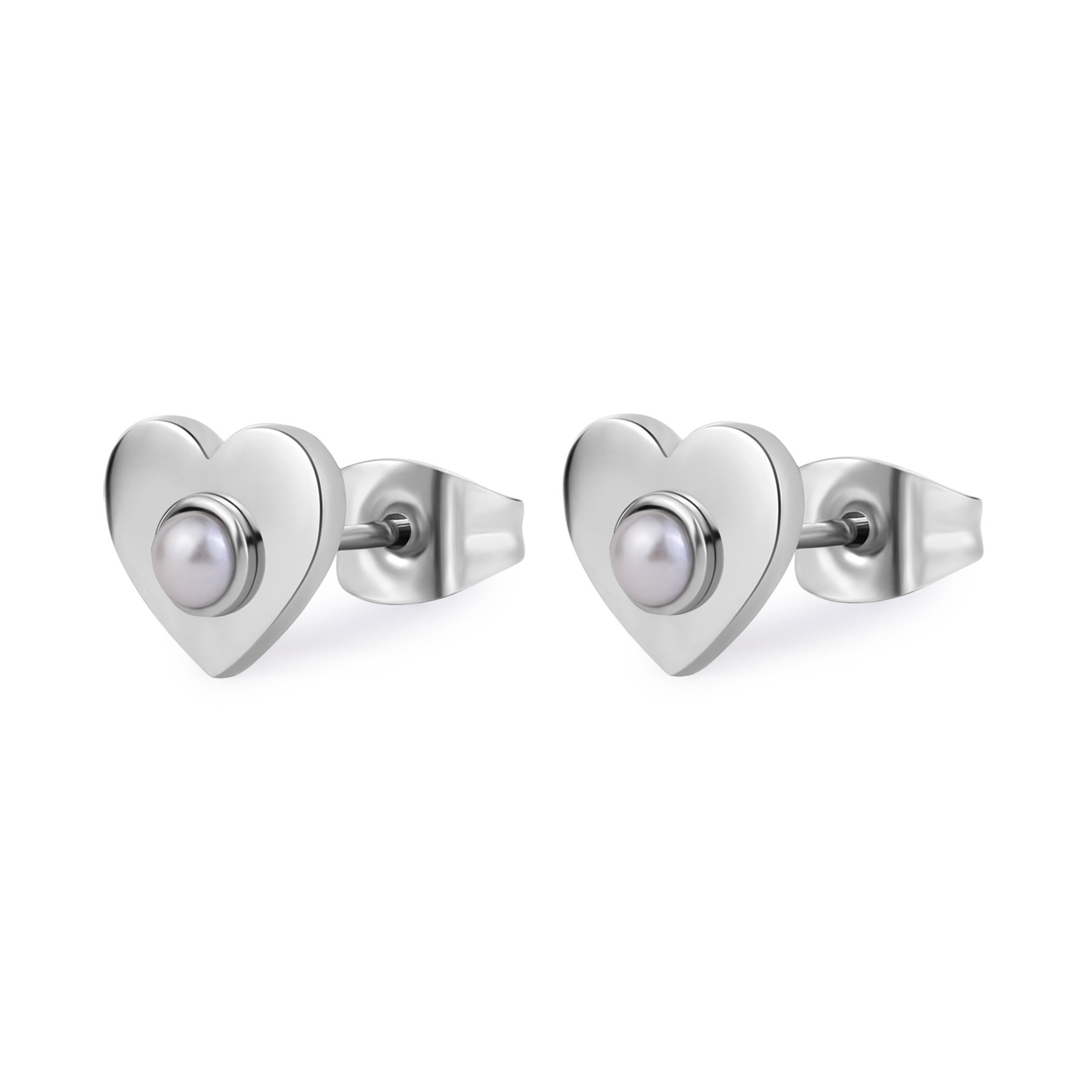 Orecchini a lobo in acciaio 316L, a forma di cuore e perle.