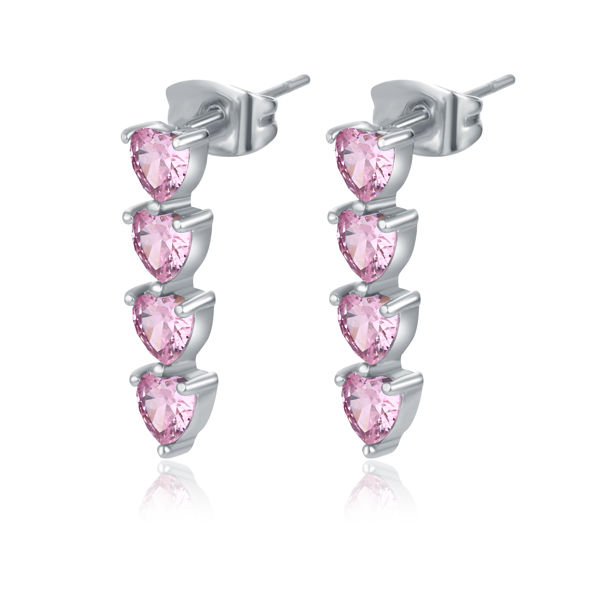 Orecchini con 4 cristalli a cuore pendenti rosa