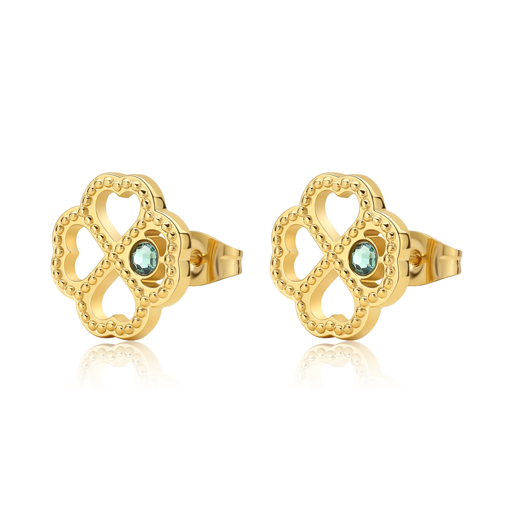 Aggiungi alla listaOrecchini a lobo in acciaio 316L a forma di quadrifoglio con cristalli.