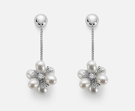 Orecchini in Argento 925 ‰ con perla Fresh water da Ø 5.5/6 con gemme swarovsky2 Anni di Garanzia