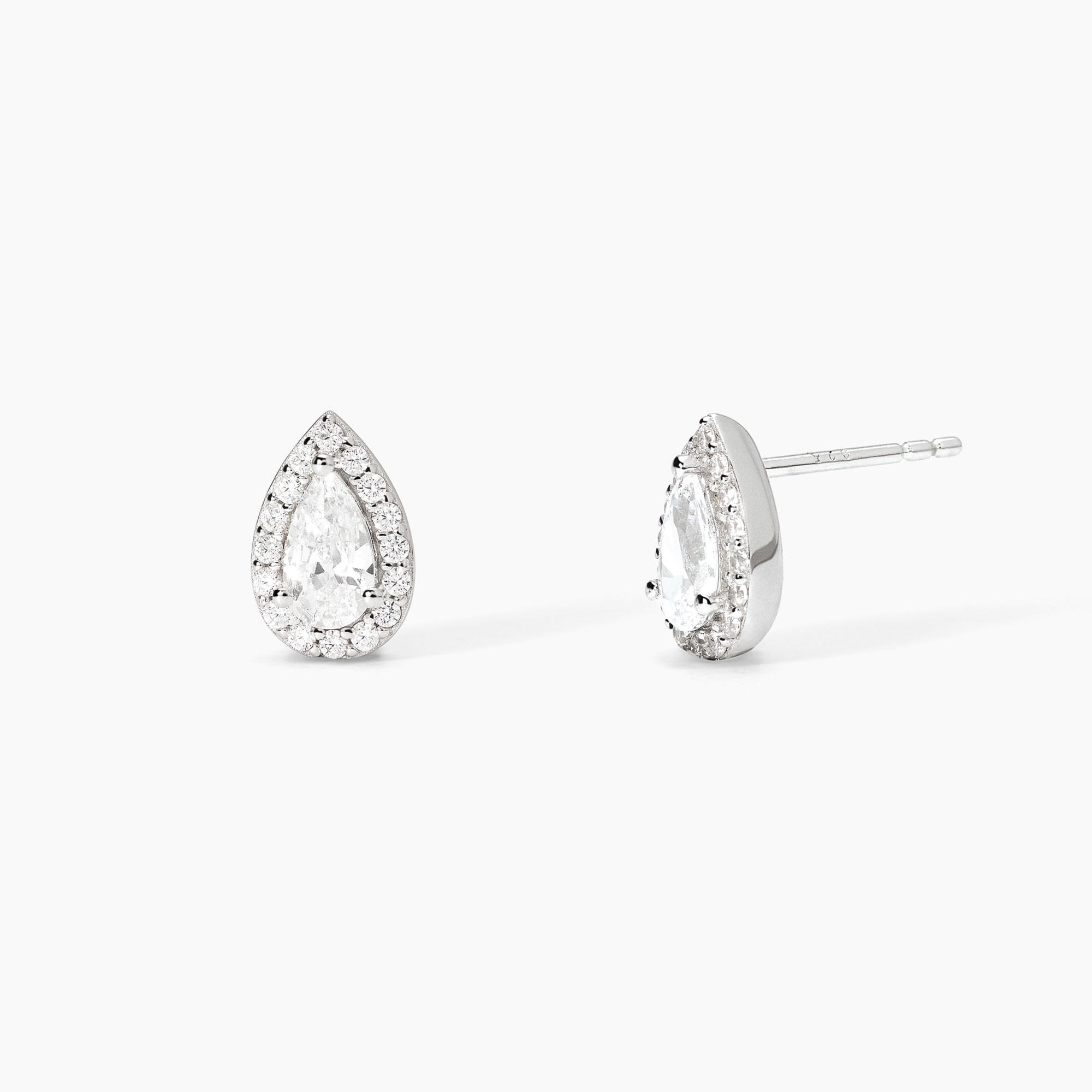 Orecchini da donna a lobo taglio goccia in argento rodiato.