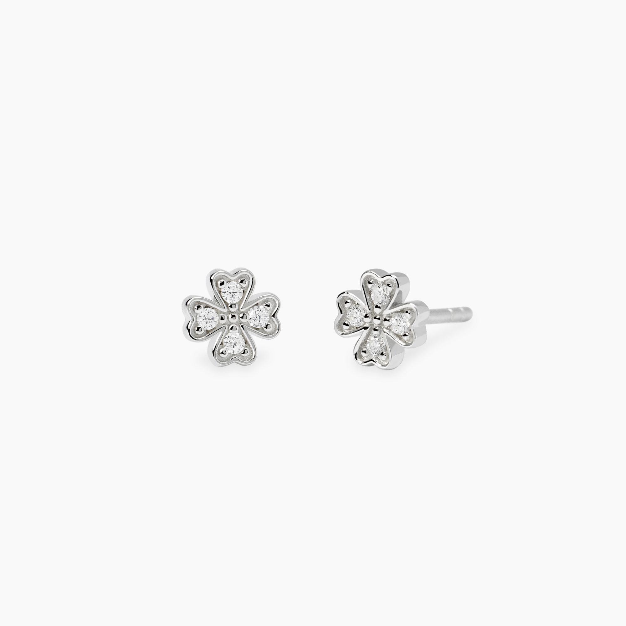 Orecchini a lobo in argento rodiato a forma di quadrifoglio in diamanti lab-grown 0,01 ct.