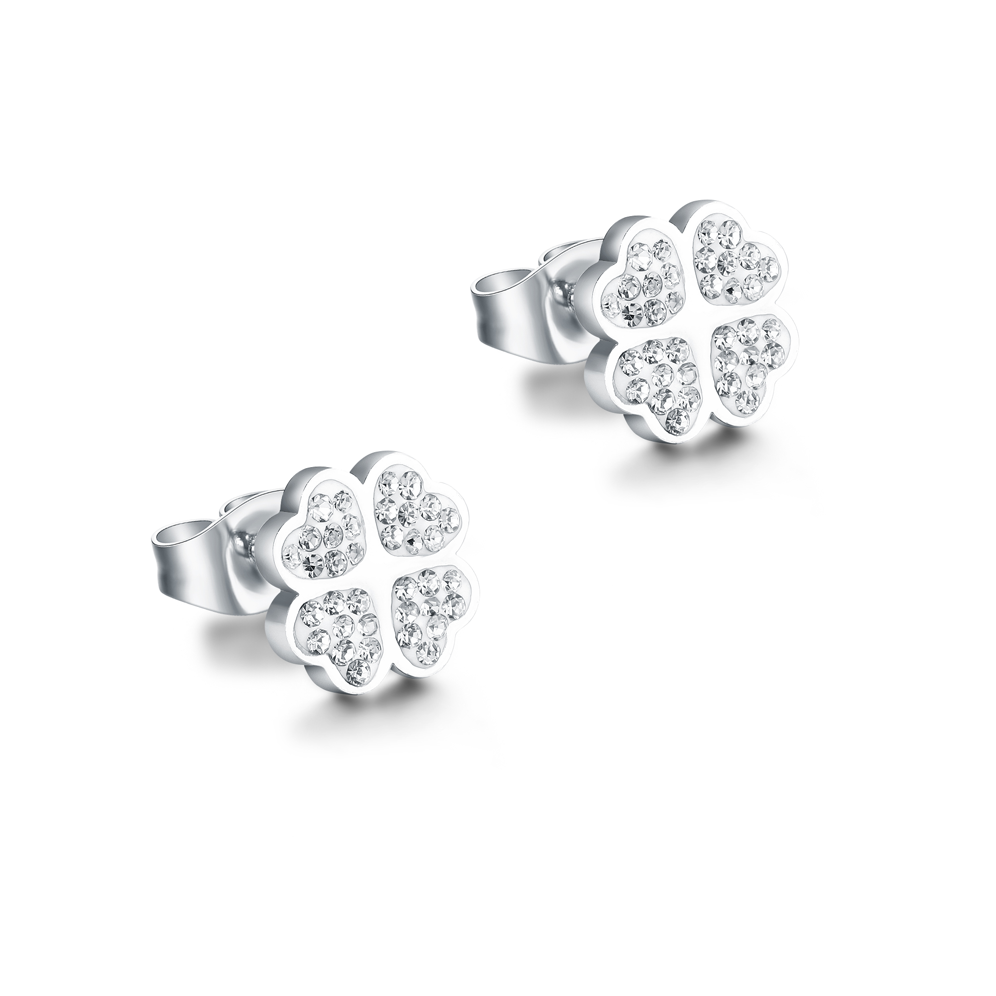 Orecchini Quadrifoglio Cristalli Bianchi