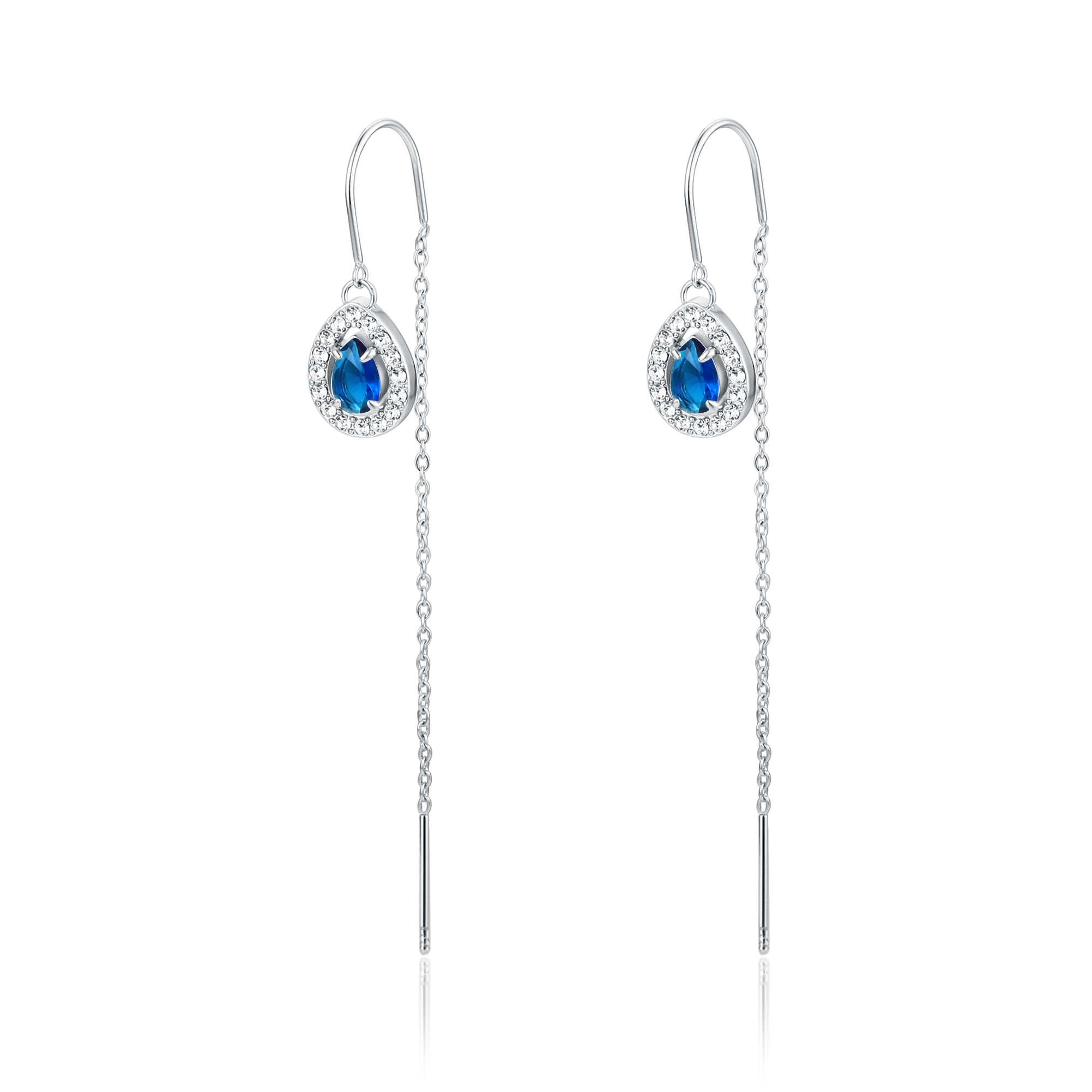 Orecchini saliscendi con cristallo goccia blu pendente