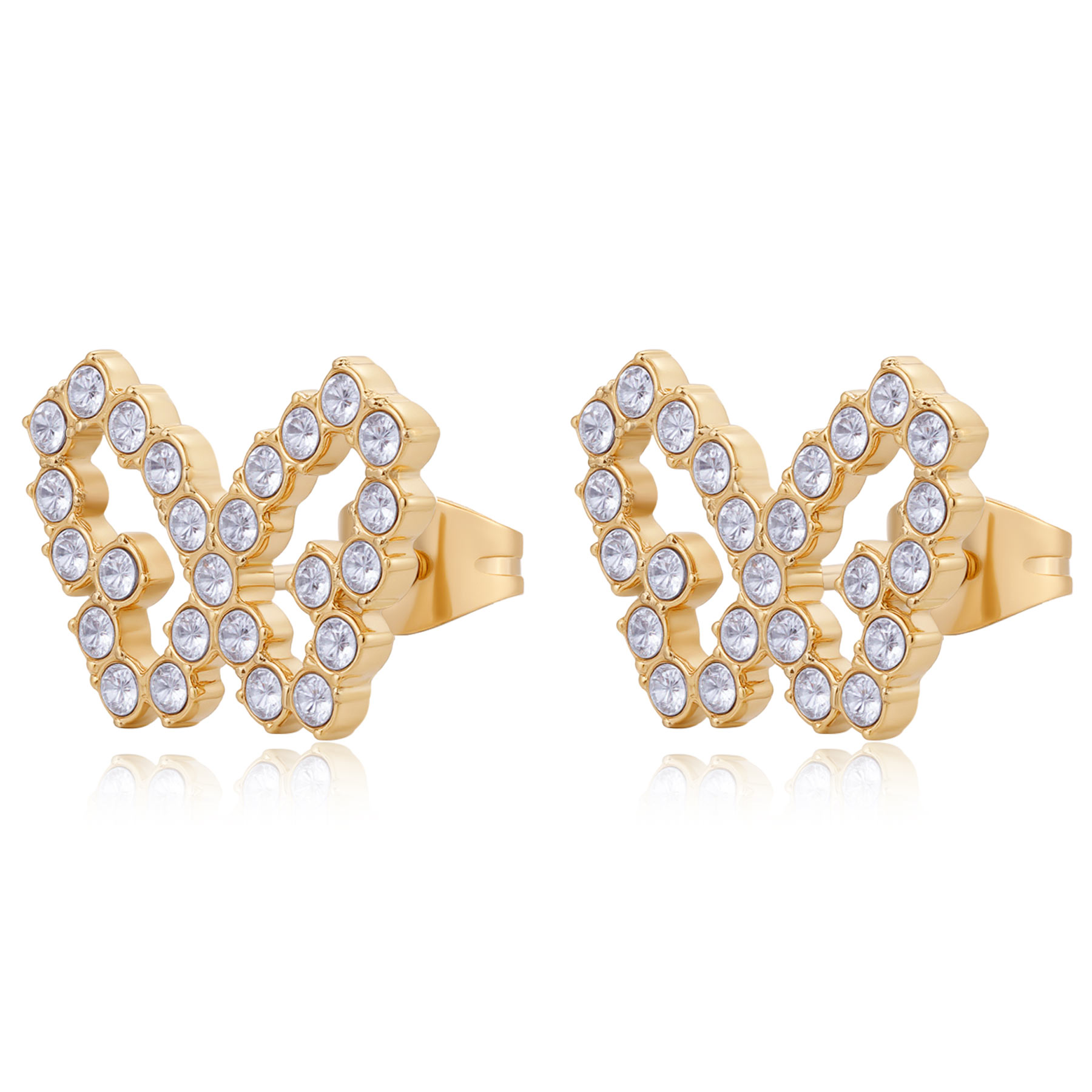 Orecchini realizzati in acciaio dorato con farfalla al lobo.