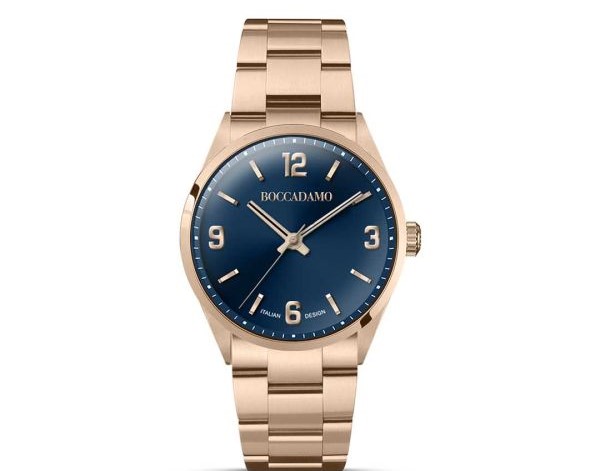 Orologio solo tempo uomo, quadrante blu con indici color oro rosa e bracciale in acciaio Solid color oro rosa.