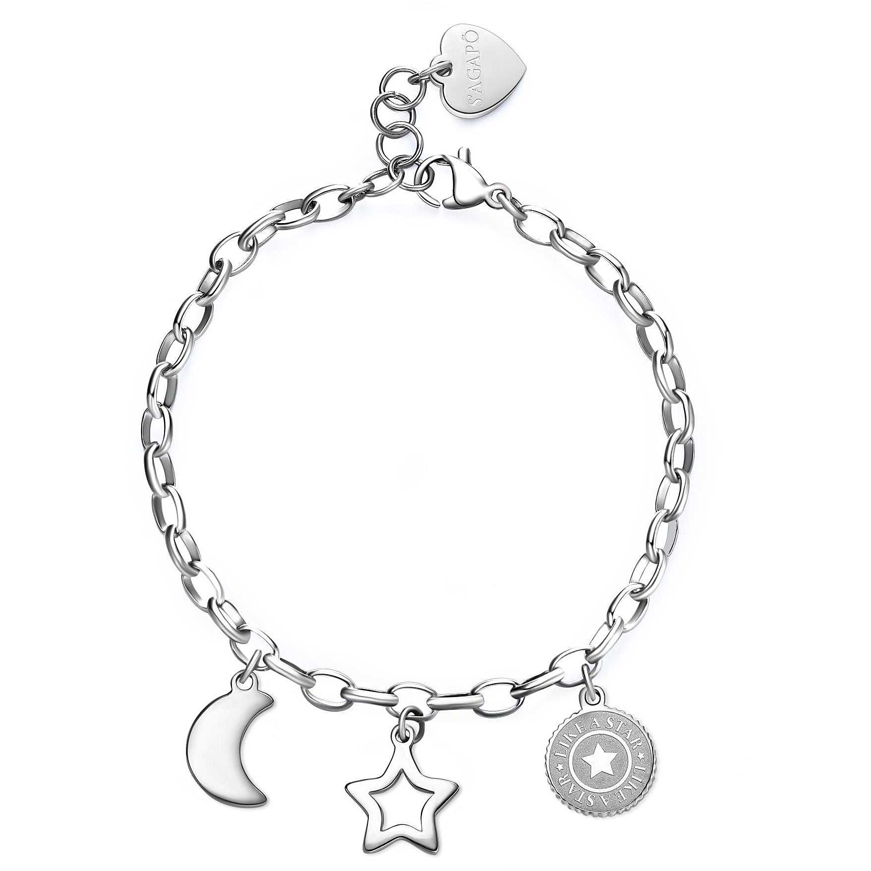 Bracciale Da Donna Di Sagapo Della Collezione Happy. Bracciale Happy In Acciaio 316L, Sogni Luna E Stella. Lunghezza: 185 Mm. Peso: 5,9 G. La Referenza È Shar11