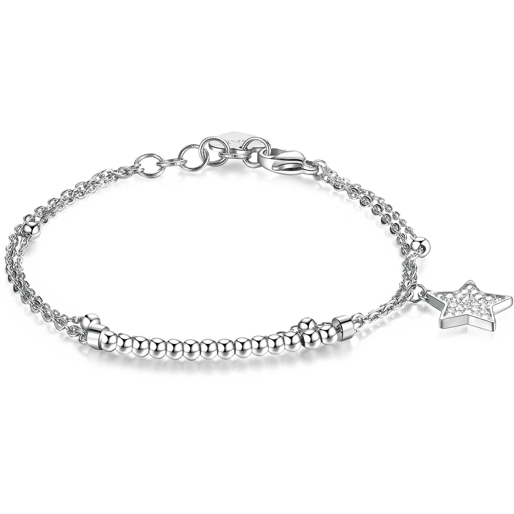 Bracciale Da Donna Di S’Agapò Della Collezione Aurora. Bracciale Con Stella Realizzato In Acciaio E Cristalli Bianchi. Gioiello Della Lunghezza Di 180 Mm E Peso Di Gr 4.30. La Referenza È Sar11