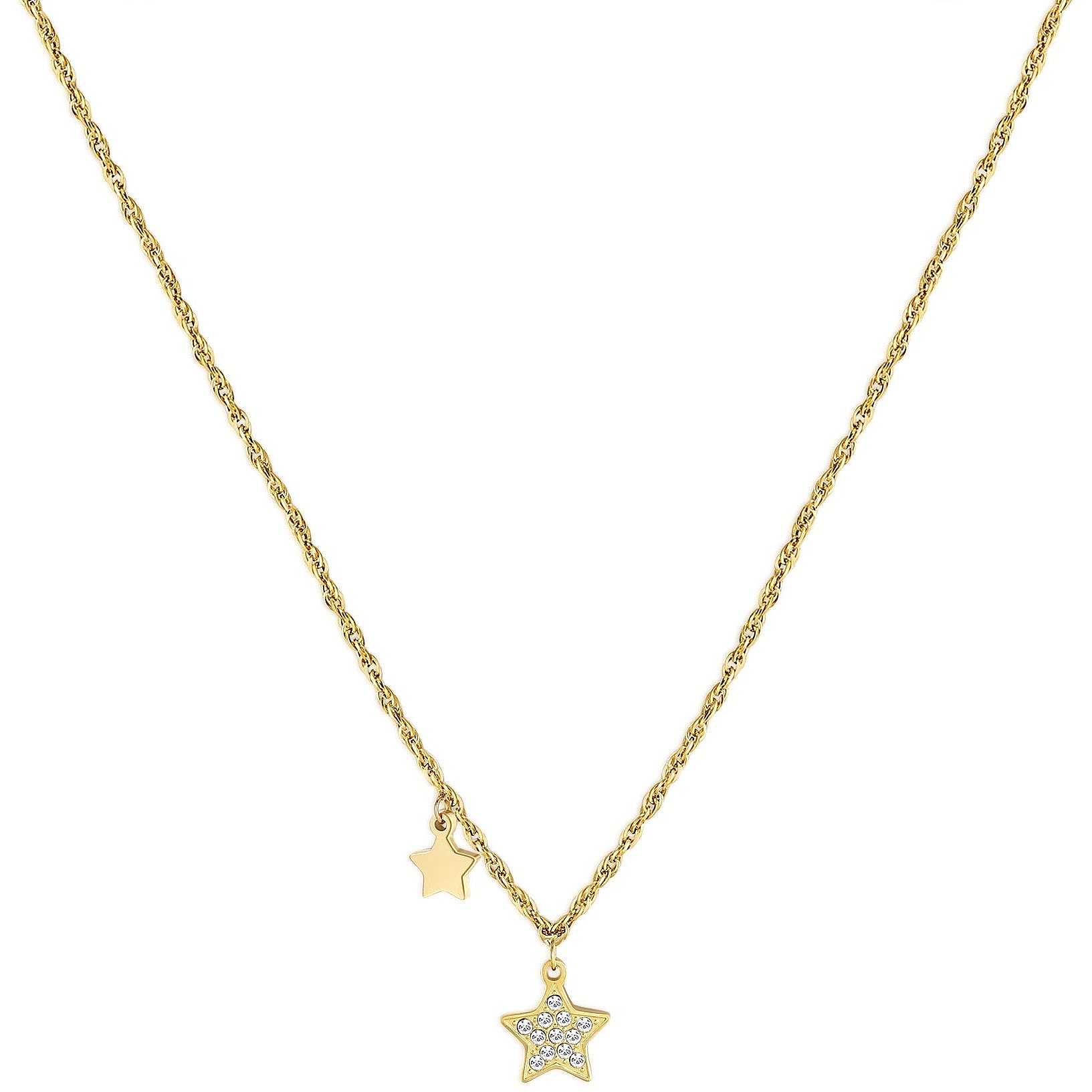 Collana Da Donna Di Sagapo Della Collezione Aurora. Collana Aurora In Acciaio 316L E Cristalli Crystal, Con Finitura Oro E Pendenti A Forma Di Stella. Lunghezza: 440 Mm. Peso: 4,5 G. La Referenza È Sar23