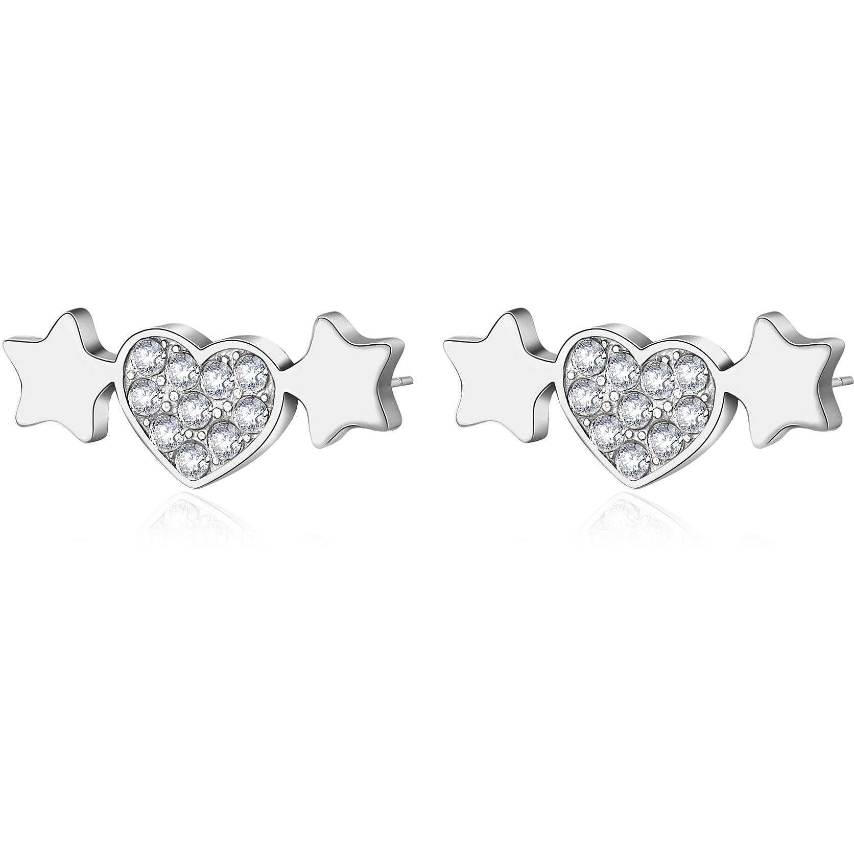 Orecchini Da Donna Di Sagapo Della Collezione Aurora. Orecchini Aurora In Acciaio 316L E Cristalli Crystal Con Cuore E Stelle. Peso: 1,6 G. La Referenza È Sar30