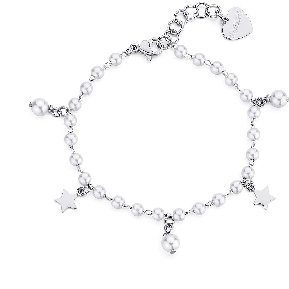 Bracciale in acciaio con perle e pendenti a forma di stella da donna del brand S’agapò della collezione Wisdom. Misura: 190mm. La referenza è SWI11