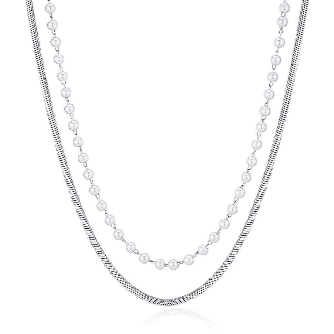 Collana doppio filo in acciaio con perle da donna del brand S’agapò della collezione Wisdom. Misura: 460mm. La referenza è SWI05
